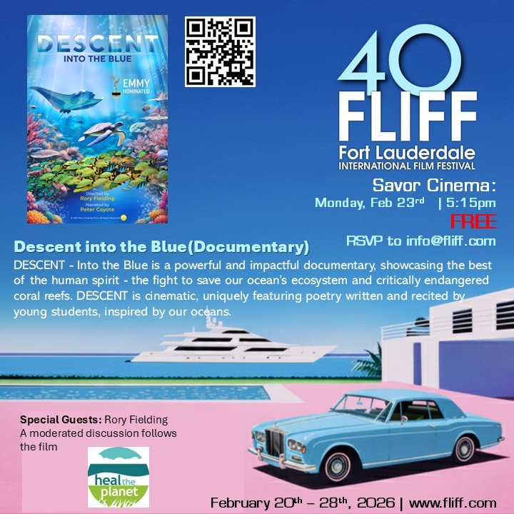 Back to All Events Descent Into the Blue Screening (FREE) Monday, February 23, 2026 5:15 PM 6:15 PM Savor Cinema 503 Southeast 6th Street Fort Lauderdale, FL, 33301 United States (map) Google Calendar ICS RSVP HERE